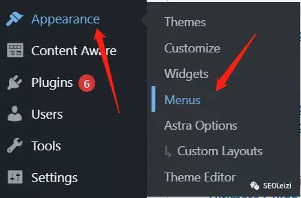 进入我们的网站后台,找到 Appearance > Menus