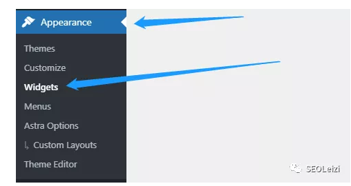 01 在后台找到Appearance > Widgets 。