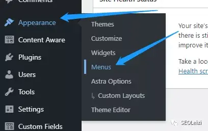 进入网站后台,然后找到Appearance > Menu