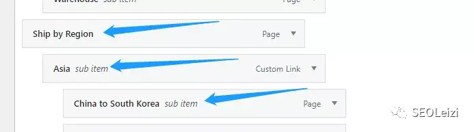 你可以直接拖动这个导航条来调节它的位置,呈现一级,二级,三级菜单,步骤跟我之前的一片文章里所提是一样的,当你编辑好后,点击下方的“Save Menu”,即可保存你的顶部导航栏设置。