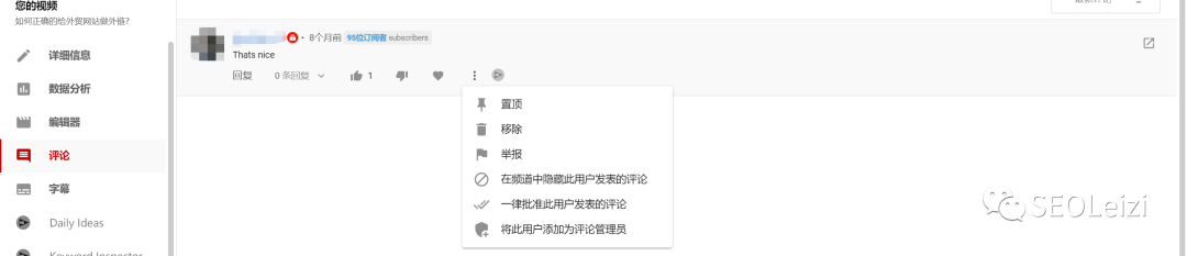 Youtube的管理评论的地方存在两个,一个是单个视频的评论,一个是整体的评论。首先,我们先来了解视频单个视频的评论区。
