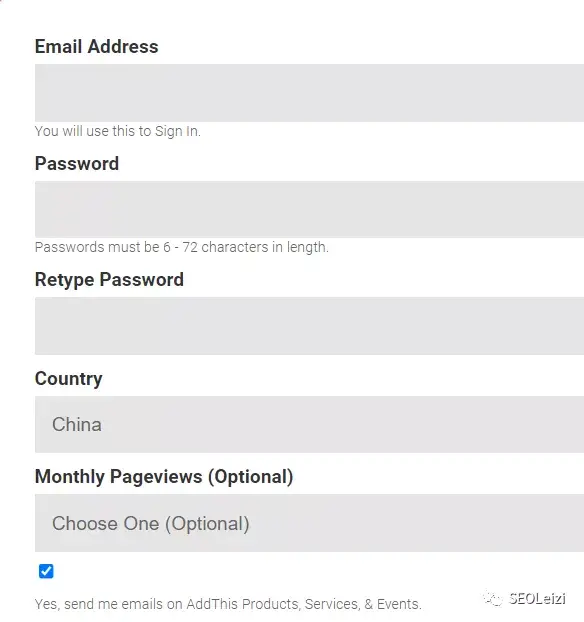 登录“http://Addthis.com”,创建一个的账号,如果你已有账号了,就可跳过这一步。