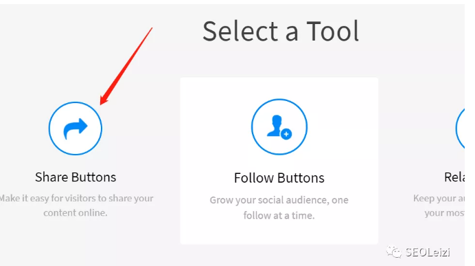 注册完成后会直接跳出一个工具选择页面,点击“Share Button”即可。