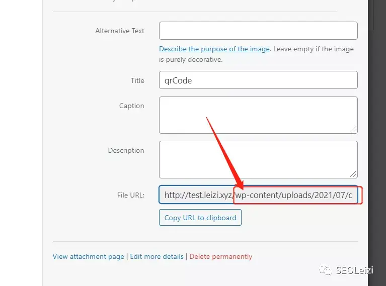 图片上传完成后,在下方找到并点击你刚刚上传的二维码,复制右下角File URL的“xyz/”之后的内容