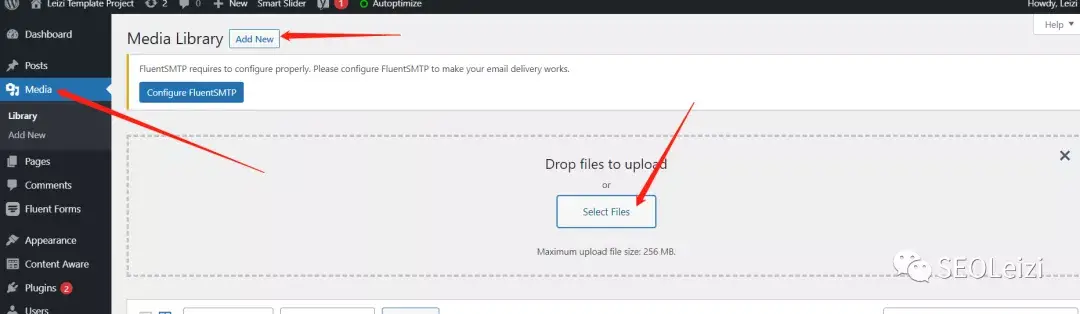 点击网站后台右上角的“Media”,再点击右侧的“Add New”上传我们刚开始准备好的两张二维码。(你可以选择右击Media来新开一个页面,这样方便我们之后上传素材
