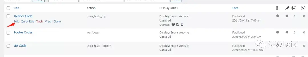 进入后台,找到Appearance > Astra Options > Custom Layouts