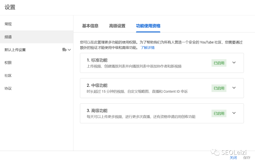 当然,人也有犯错的时候,也就是说,有可能你的视频内容本身确实没有问题,但却还是得到了“社区警告”的话,那么在这种情况下你就需要到工作室->设置->频道->功能使用资格中来对相应的处理进行申诉了。