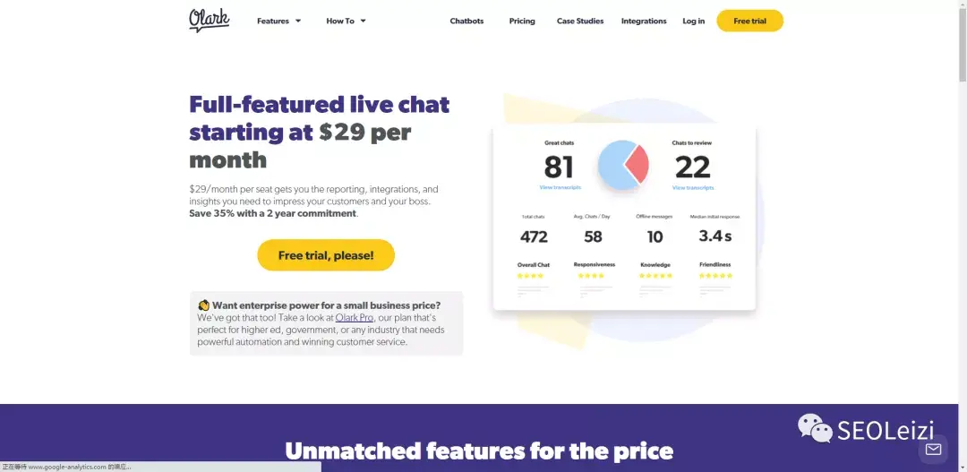 - 拥有Live Chat付费版的特点,如客服打分,聊天信息查看,聊天信息报告等
