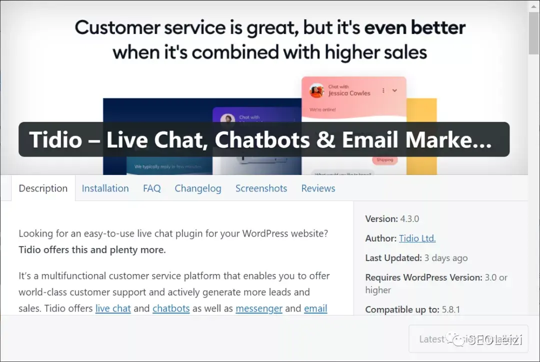 Tido Live Chat 是一款操作较为简单的网页聊天插件,你可以在Plugins商城里直接搜索找到,然后安装激活后,跟着网页的步骤就可安装完成。